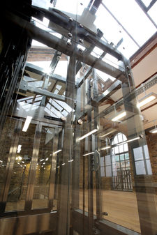 The project involved the formation of a new entrance, new WCs, a new staircase, and the installation of a striking contemporary glass lift. The lift became a key architectural feature within the building, providing modern access while contrasting cleanly with the retained historic fabric.