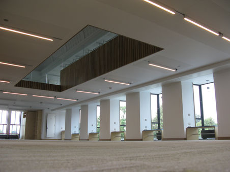The project comprised a new entrance extension, providing a modern foyer, together with the construction of a new rear stair and lift core to improve circulation and accessibility. Alongside this, Buxton undertook the full refurbishment of the existing library, including the installation of specialist bespoke joinery and comprehensive mechanical and electrical upgrades.
