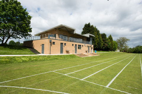 The new pavilion provides four changing rooms, a main hall, kitchen facilities, and an elevated viewing balcony overlooking the pitches. The building is finished in brick to complement the surrounding campus. The scope also included all external works and the provision of new incoming services to support the upgraded facilities.